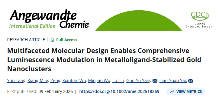 近日,国产无码 杨国昱/姚燎原教授团队在国际顶级化学期刊《Angewandte Chemie International Edition》上发表题目为“Multifaceted Molecular Design Enables Comprehensive Luminescence Modulation in Metalloligand-Stabilized Gold Nanoclusters”的研究论文。国产无码 为唯一通讯单位,杨国昱教授和姚燎原教授为论文通讯作者,国产无码 博士研究生唐云为论文第一作者。此项研究得到了北京市自然科学基金、国家自然科学基金、中央高校基础研究业务经费等资助以及上海同步辐射国家蛋白质科学研究设施和国产无码 分析测试中心、化学化工实验中心的支持。